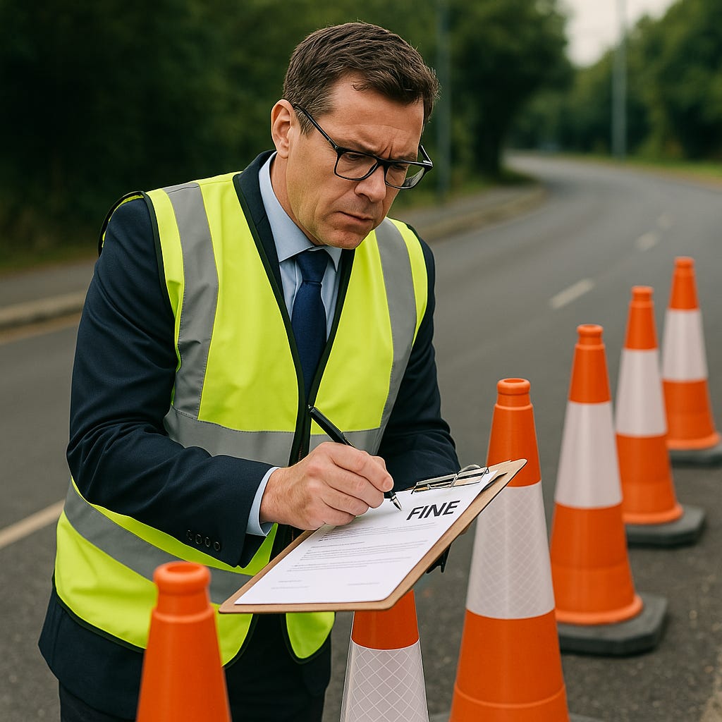 In legislation rushed through Pickwicks under urgency last night, every local authority around the country is now mandated to appoint at least one Road Cone Commissar. These Commissars have the power to issue spot fines to road cones if the number being placed on a worksite exceed the amount expected to be used by motorists passing said worksite.